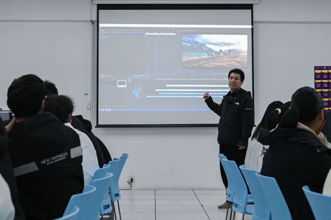 作為這門課的主講老師,周序老師說:“我們這門課程作為藝術選修課面對全校、全年級、全專業,弱化了專業實操的難度,更偏向于將電影藝術的理論知識教授輔以實踐技能傳授。學生不僅學習劇本構思、攝影攝像、導演演繹等創意技巧,還能通過實際操作,從拍攝到剪輯,體驗完整的電影制作流程。課程鼓勵原創精神和個性化表達,讓學生在探索自我風格的同時,培養審美觀和藝術鑒賞力。此外,課程還提供跨學科合作的機會,如音樂、美術設計等,以拓寬學生的藝術視野,最終目的是讓學生能夠了解如何完成一部微電影作品。”