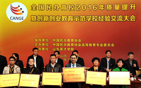 此次在山東濟南隆重召開的全國民辦高校2016年質量提升暨創新創業教育示范學校經驗交流大會由中國民辦教育協會指導,中國民辦教育協會高等教育專業委員會主辦。來自全國23個省市、自治區100余所高校、科研院所、教育機構的220余位代表齊聚一堂,交流創新創業教育質量提升的經驗,探討推進民辦高校持續健康發展的有效途徑。