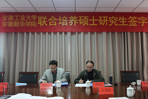 最后,馬鳳余與鄭明東分別代表安徽新華學院和安徽工業大學簽訂了合作協議。