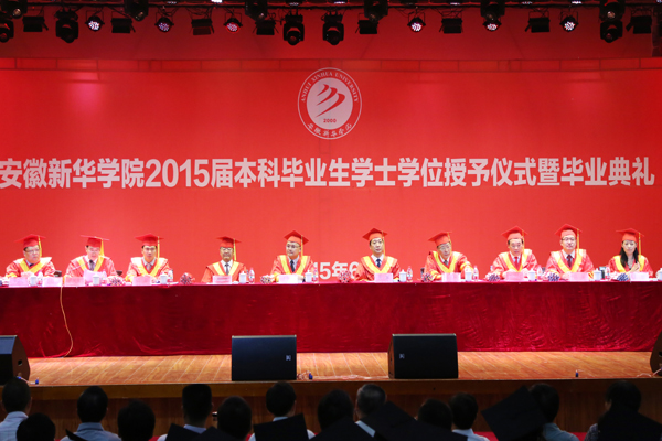 6月29日,安徽新華學(xué)院2015屆本科畢業(yè)生學(xué)士學(xué)位授予儀式暨畢業(yè)典禮在校大禮堂隆重舉行。集團(tuán)公司和學(xué)校領(lǐng)導(dǎo)為部分學(xué)生代表頒發(fā)學(xué)士學(xué)位證書并扶正流蘇。