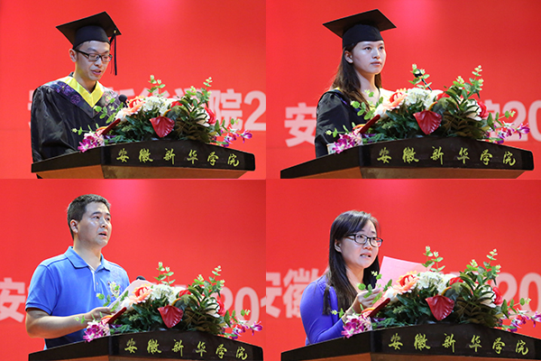 校長(zhǎng)石秀和教授在會(huì)上深情致辭。他代表學(xué)校全體師生員工向圓滿完成大學(xué)四年學(xué)業(yè),即將踏上全新征途的2015屆畢業(yè)生們表示衷心的祝賀。他說(shuō),大學(xué)是人生中最關(guān)鍵的旅程,2015屆畢業(yè)生四年來(lái)在這里成人、成長(zhǎng)、成才,是學(xué)校的驕傲;未來(lái),母校將圍繞建設(shè)地方應(yīng)用型高水平大學(xué)的目標(biāo),全面深化教育教學(xué)改革,不斷提高人才質(zhì)量,為社會(huì)的發(fā)展提供更有利的人才支撐,母校更將成為學(xué)生的驕傲!石秀和希望畢業(yè)生們?cè)谶@個(gè)全球化浪潮洶涌而來(lái),各種思潮相互碰觸的變革年代,能夠與時(shí)俱進(jìn),緊緊跟上時(shí)代的潮流,勇敢克服生活的困境以外,更能夠堅(jiān)守自我,做一個(gè)新時(shí)代背景下大寫的人,做一個(gè)對(duì)中華文明的傳承與進(jìn)步起到推動(dòng)作用的新青年。希望畢業(yè)生們要珍惜青春,努力奮斗,孜孜不倦學(xué)習(xí),勤勉奮發(fā)干事,用有限的青春去創(chuàng)造無(wú)限的可能,用實(shí)際行動(dòng)架起理想與現(xiàn)實(shí)之間的橋梁;要不斷創(chuàng)新,爭(zhēng)當(dāng)創(chuàng)客,不斷打破思維的慣性,讓創(chuàng)新融入畢業(yè)生們的血液,用創(chuàng)意改變世界的未來(lái);要敢于負(fù)責(zé),勇于擔(dān)當(dāng),畢業(yè)生們只有承擔(dān)起自己應(yīng)當(dāng)承擔(dān)的社會(huì)責(zé)任、職業(yè)責(zé)任、家庭責(zé)任,才能實(shí)現(xiàn)自身良好生存與自由發(fā)展,才能收獲成功的事業(yè)與美滿的家庭,才能在未來(lái)的發(fā)展道路上健步如飛,走的更快、更好、更遠(yuǎn);要愛(ài)崗敬業(yè),甘于奉獻(xiàn),始終保持昂揚(yáng)向上的工作激情,勇于挑起重?fù)?dān),敢于奮勇爭(zhēng)先,廉潔奉公,吃苦耐勞,在勞動(dòng)中發(fā)現(xiàn)廣闊的天地,在勞動(dòng)中體現(xiàn)價(jià)值、展現(xiàn)風(fēng)采、感受快樂(lè),以實(shí)際行動(dòng)服務(wù)社會(huì),報(bào)效國(guó)家。最后,石秀和衷心祝愿每一位畢業(yè)生都能夠前程似錦,幸福平安,希望同學(xué)們?;丶铱纯?,一如既往地關(guān)注母校,關(guān)心校友。新華,永遠(yuǎn)是同學(xué)們停泊的港灣,是同學(xué)們堅(jiān)強(qiáng)的后盾和前進(jìn)的動(dòng)力!