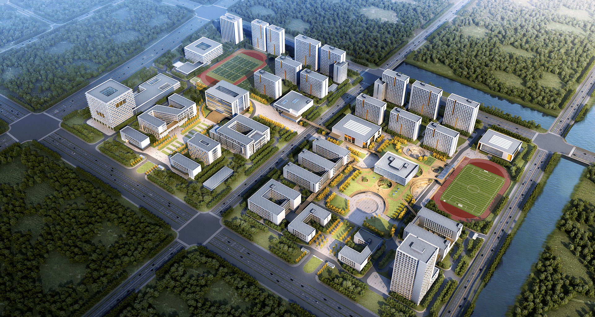 主要包含現(xiàn)代化的教學(xué)樓、實驗實訓(xùn)大樓、學(xué)生公寓、生活服務(wù)中心等建筑。